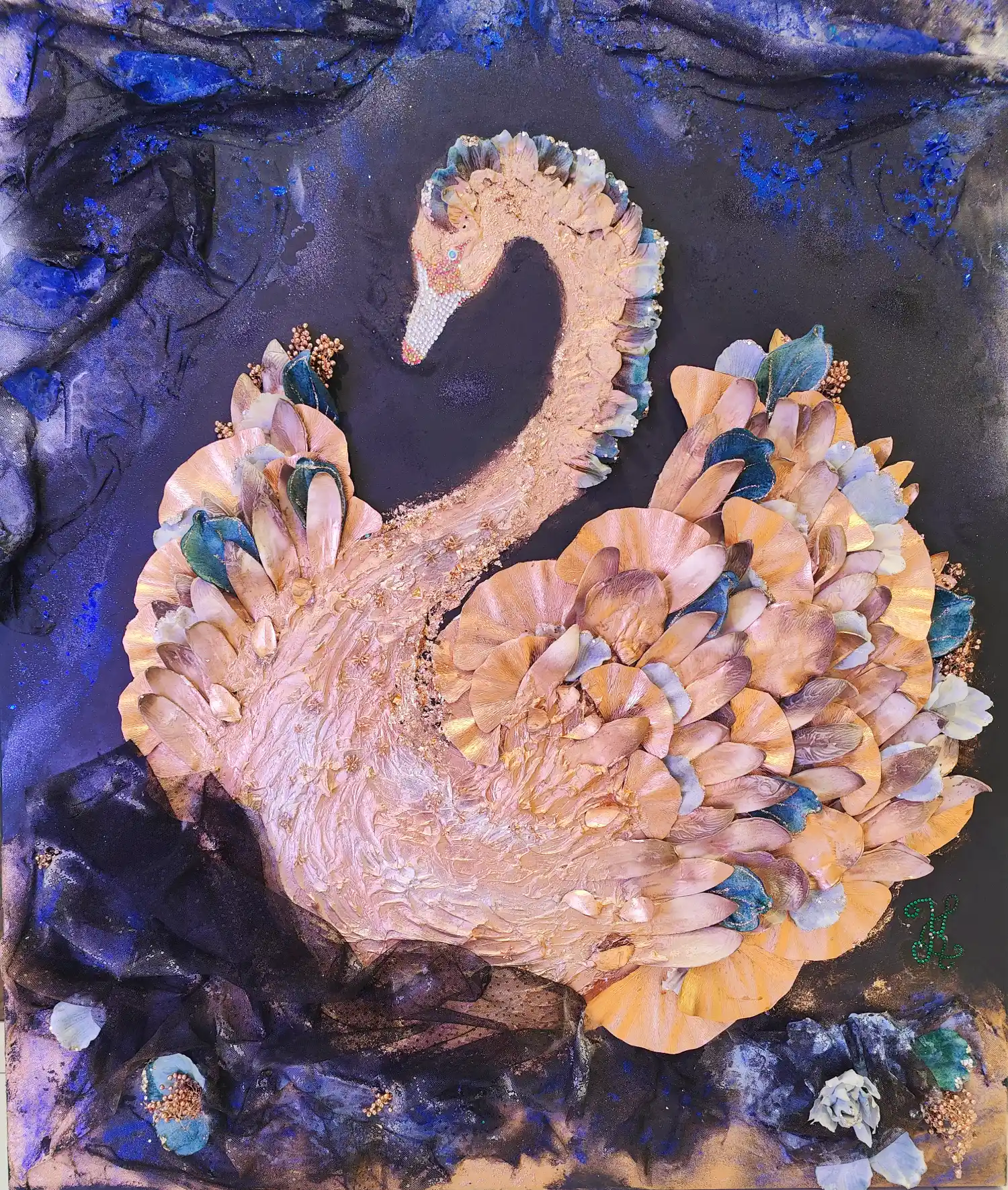 Materials: Paint, mastic, glitter, Swarovski crystals.